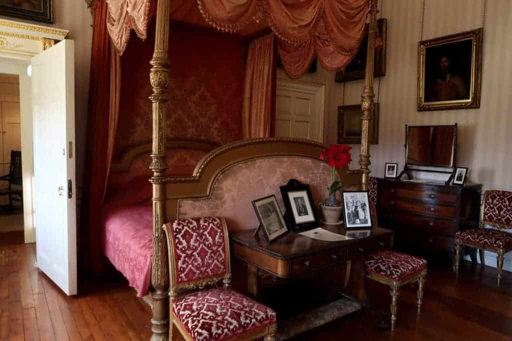 On the second floor, you will see more original pieces from the Duff family vaults: a most beautiful mirror and a stunning chandelier. It is a wonder that they didn’t take them. They still stand in the same places in the North Drawing Room and are simply beautiful, truly gorgeous.